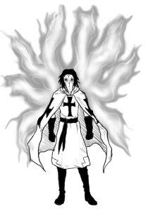 —Blasfemas en mi presencia e insultar a la santa iglesia con esas palabras salidas de tu asquerosa boca. —a su lado se forma una estela de luz que en un instante convierta en una espada brillante— Te incineraré con las llamas santas de mi fe.