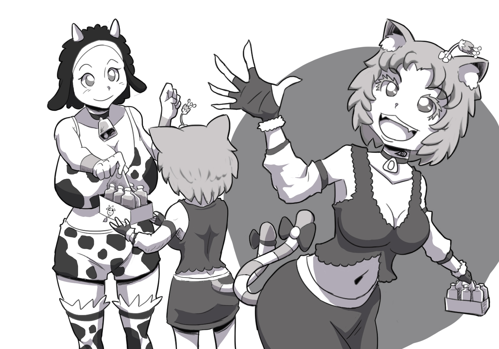 —¡Pero sí es Mini! —Todas las semihumanas vacas se emocionaron mucho y sacaron varios frascos llenos de leche.