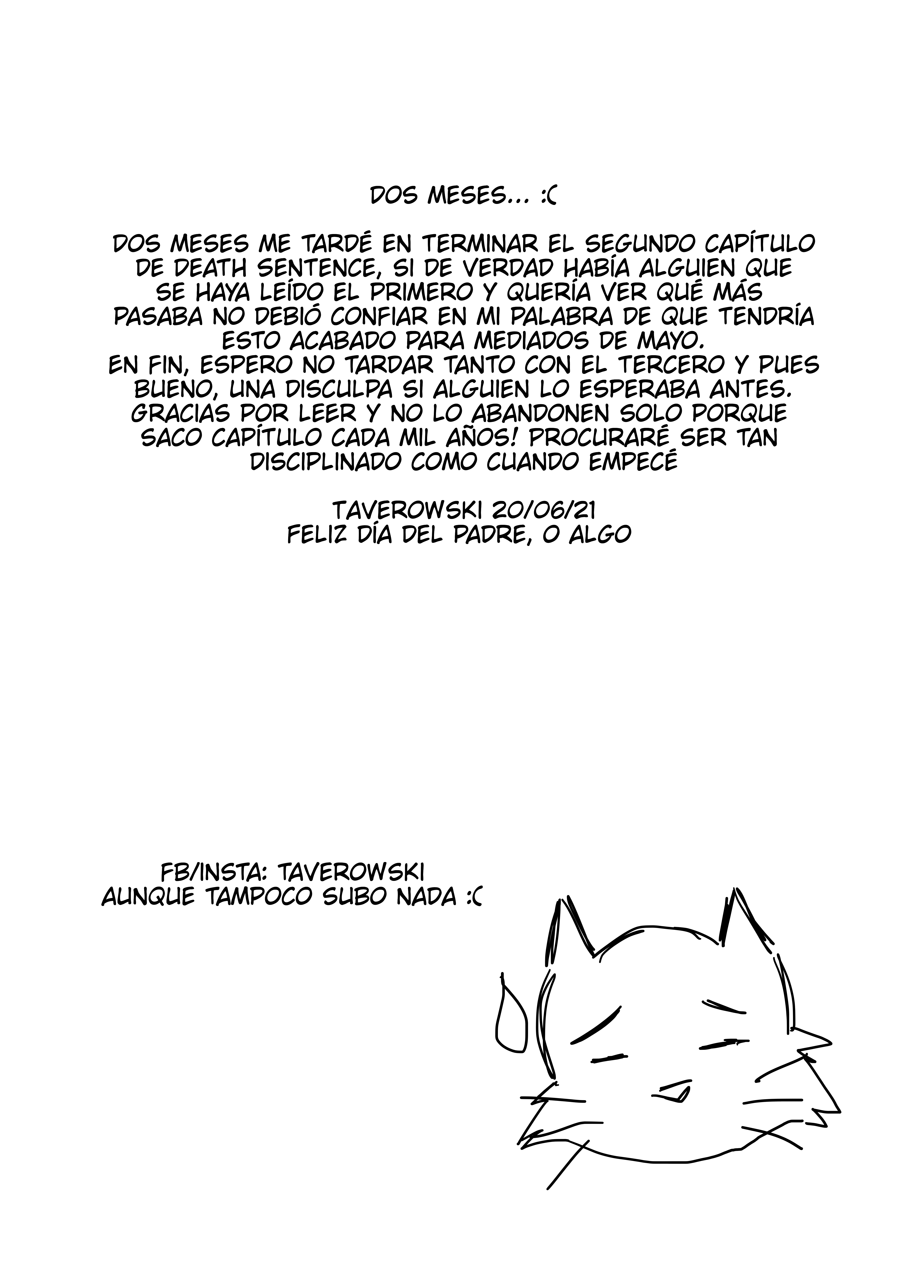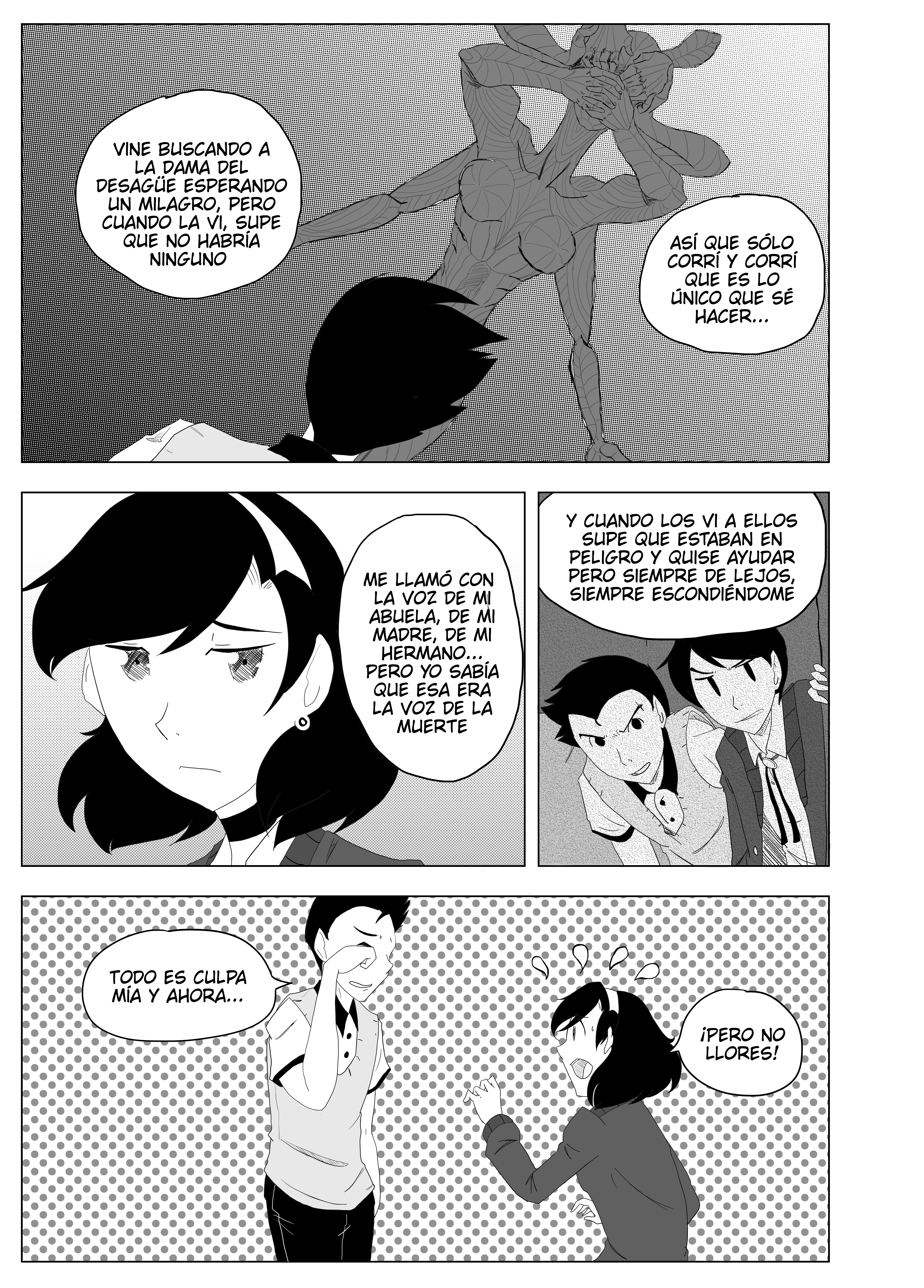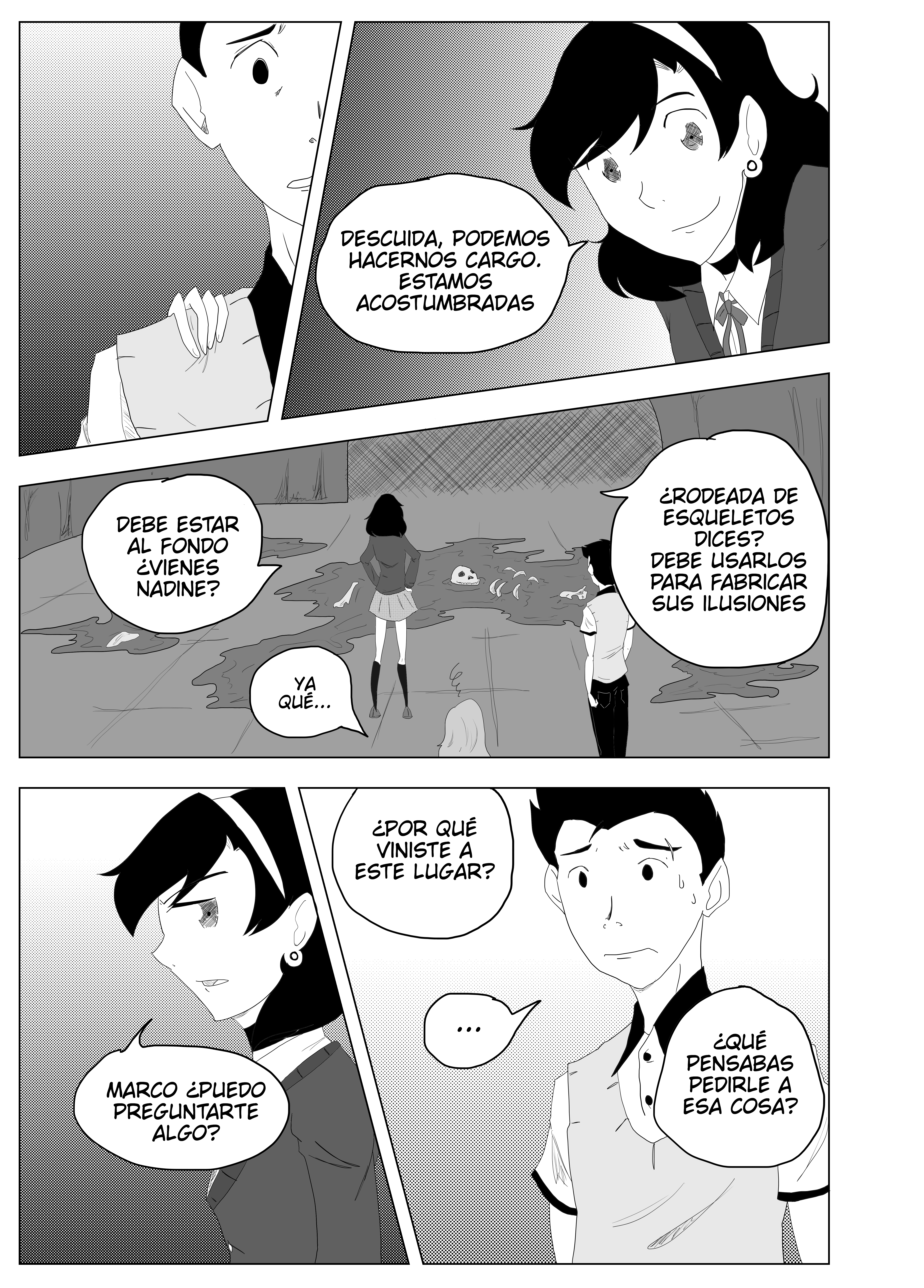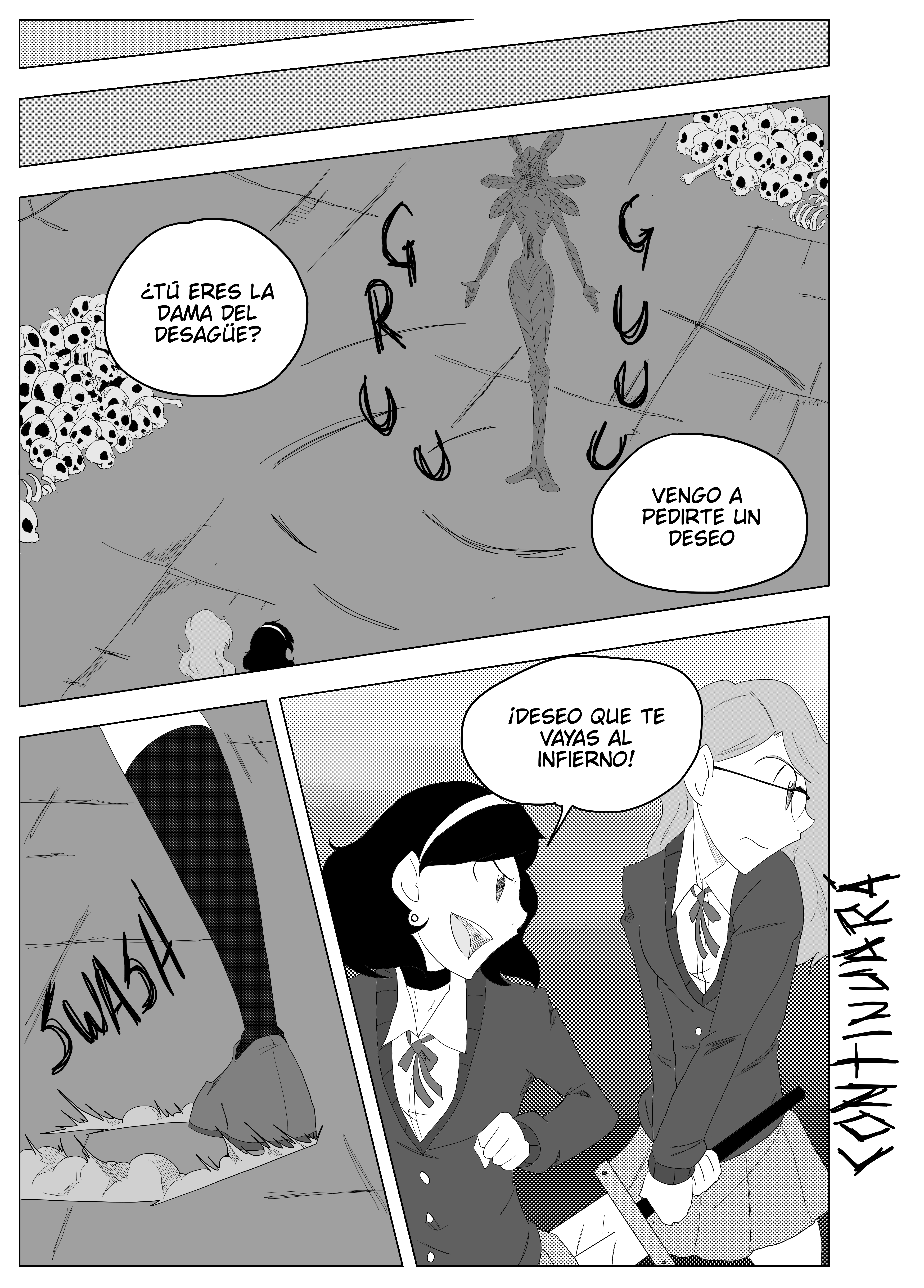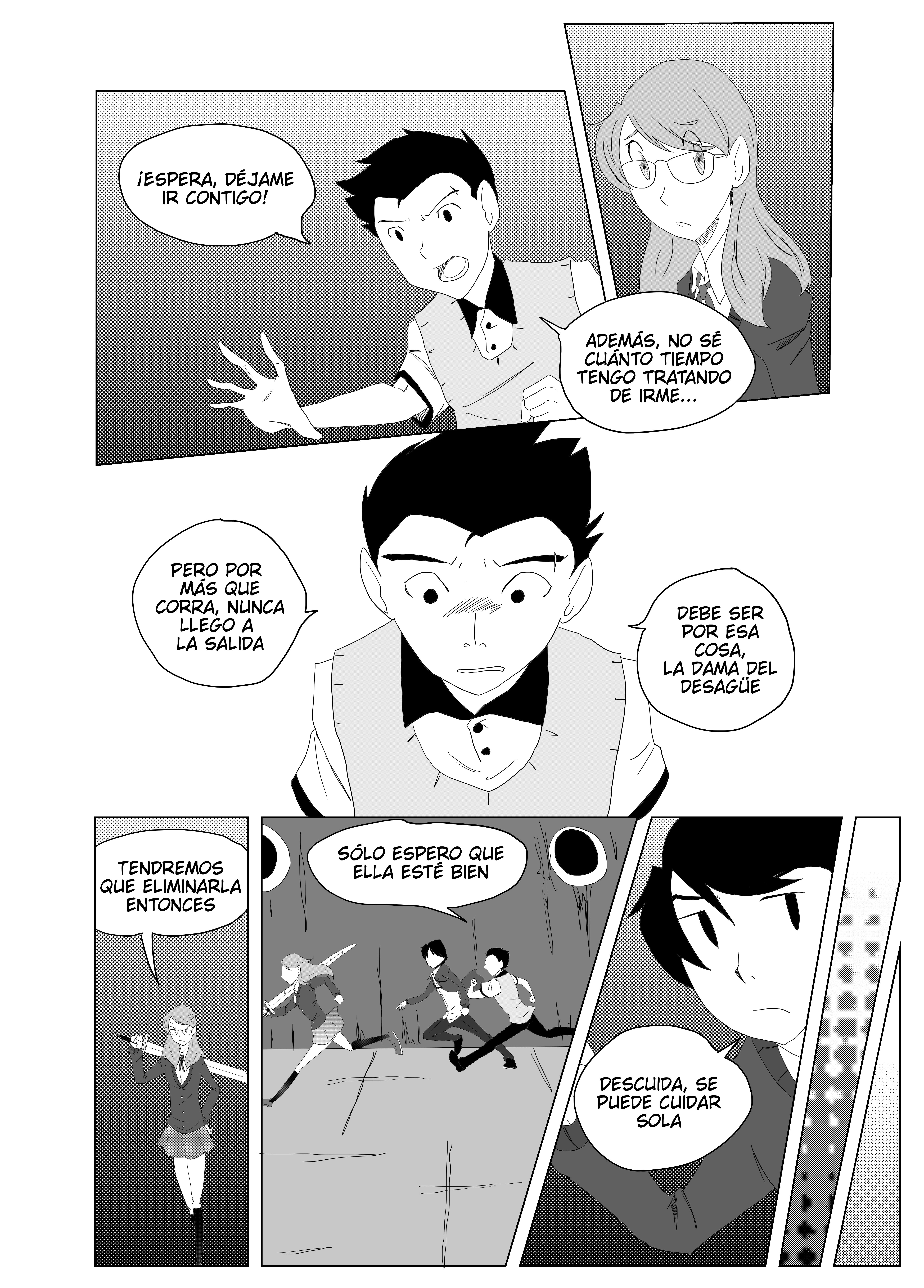 Juraba que seria de misterio la historia y en plan escolar y derrápente espada supernatural aparece jaja, se entiende que haya contratiempos cuando uno quiere sacar capítulos seguidos, pero que se le puede hacer, espero ve romo termina la historia de la dama del desagüe, el estilo de dibujo me agrada a pesar de que se le podría mejorar, pero eso ya es cosa de práctica, muy buena historia seguiré leyéndola, buen trabajo 🎃👽👻☠.
