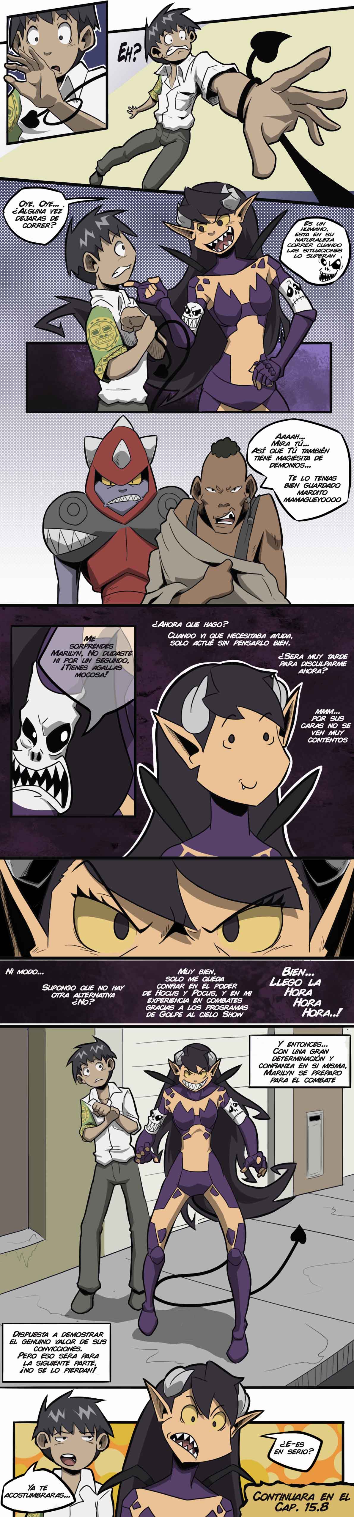 A esperar el siguiente cap qwq, todos se vincularon, celeste, marilyn y cain , uba cosa de locosss , veamos que sucede porque Marilyn no tiene xperiencia en pelas en cambio celesre si, veamos que sucede , ojala todo vaya bien, muy divertido tambien con ese chico con un demonio. Genial obra!