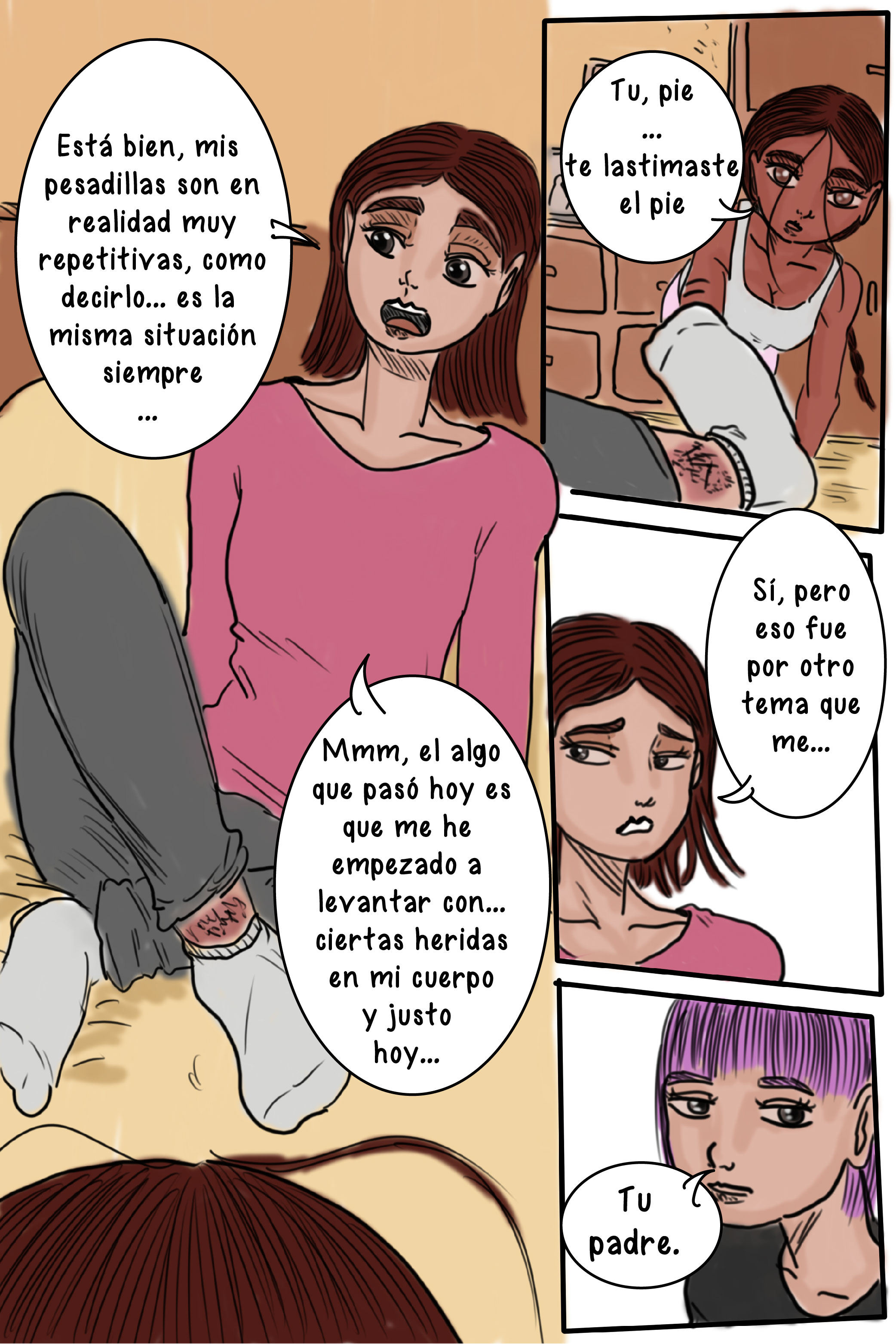 Entiendo que pasó algo con el padre y lo del pie es un accidente menor? Por un momento dudé del papá