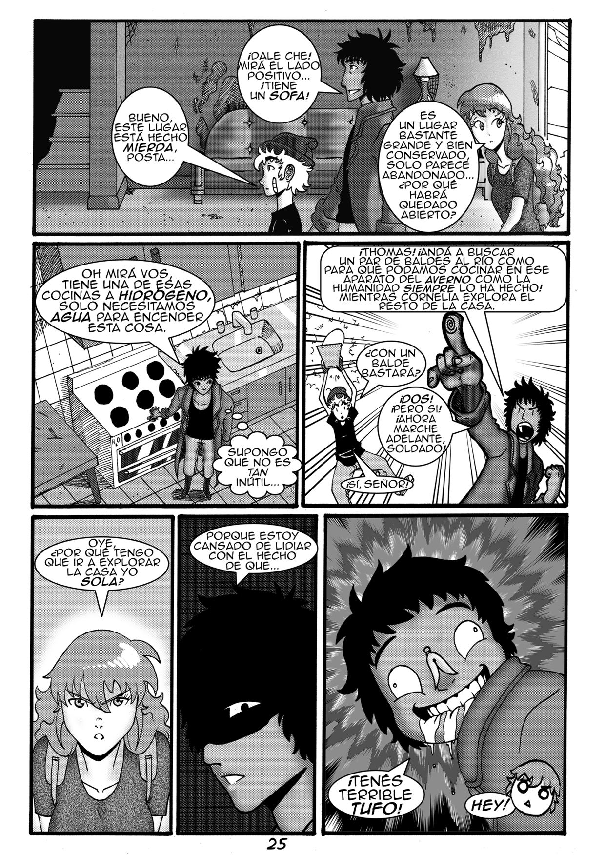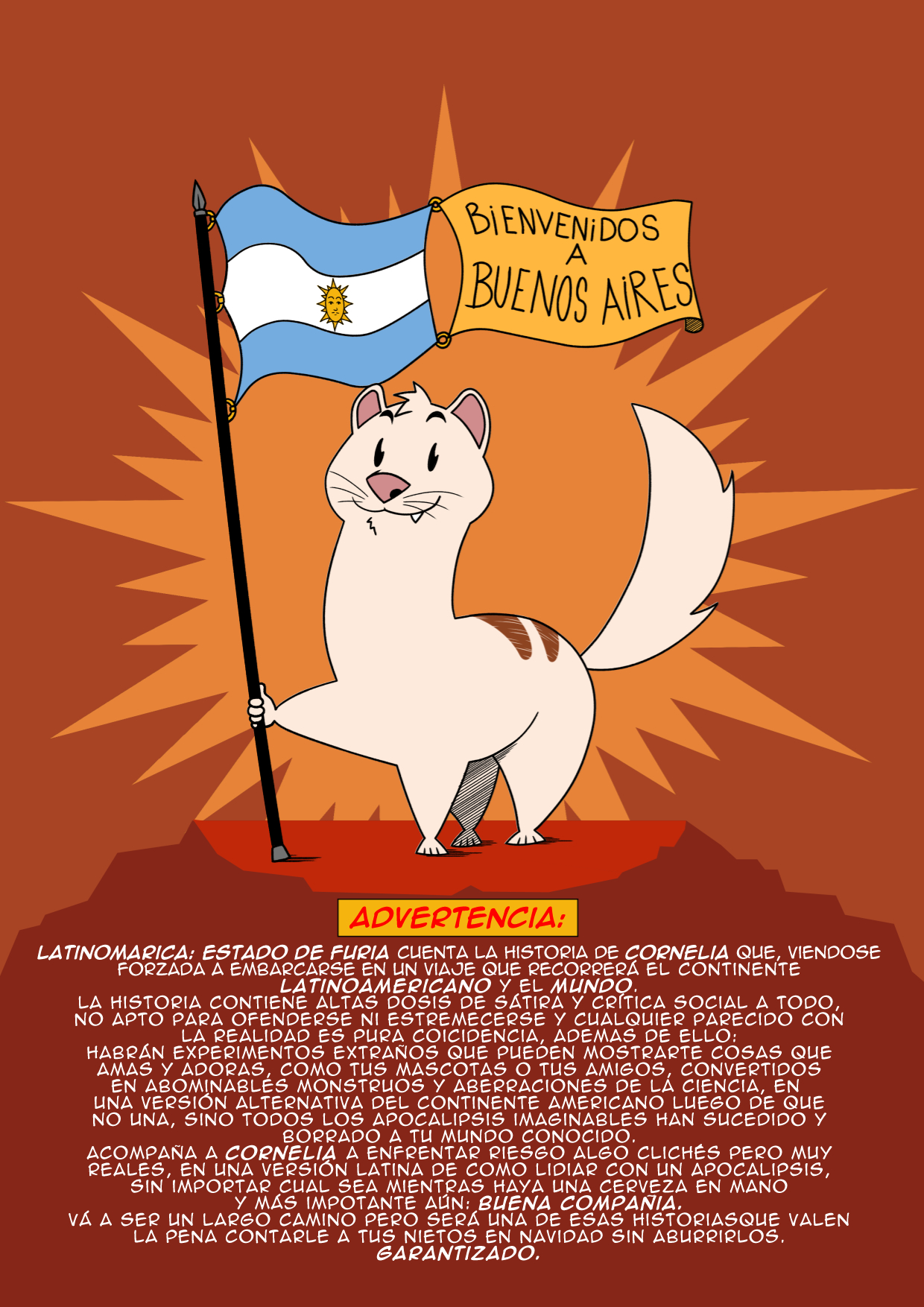Muy interesante comic, es divertido y no pierde la idea general al igual que su apartado graafico que no duda en caricaturizar las expresiones sin tener miedo a dejar la estetica de los personajes gran puntazo, estamos en un apocalipsis en Latinoamérica con alguien del humor de un comediante es aveces lo que necesitamos par ano perder lo que nos queda de razón, muy divertido el personaje secundario con sus ocurrencias, f por la familia de la protagonista y su hermanito no nacido se debe sentir Re horrible