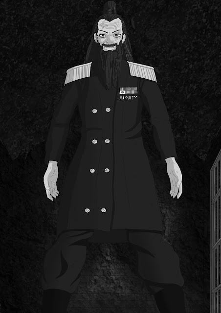 Las cárceles aquí abajo son en su mayoría adornos de una edad moderna pasajera, pero que estos malandros han logrado darles una utilidad. Hay tres de estas celdas ocupadas por chicas jóvenes, cegadas con un tabique y amarradas en las manos. Por este largo y silencioso corredizo es que camina un hombre de cabello largo castaño opaco, atado en una colita, con un uniforme militar verde oscuro, llega a solas hasta esta última celda. Aquí se puede ver al vagabundo, el anciano maestro de Law llamado Fyodor, recostado sobre la triste camilla tocando algo parecido a una pequeña ocarina vieja.