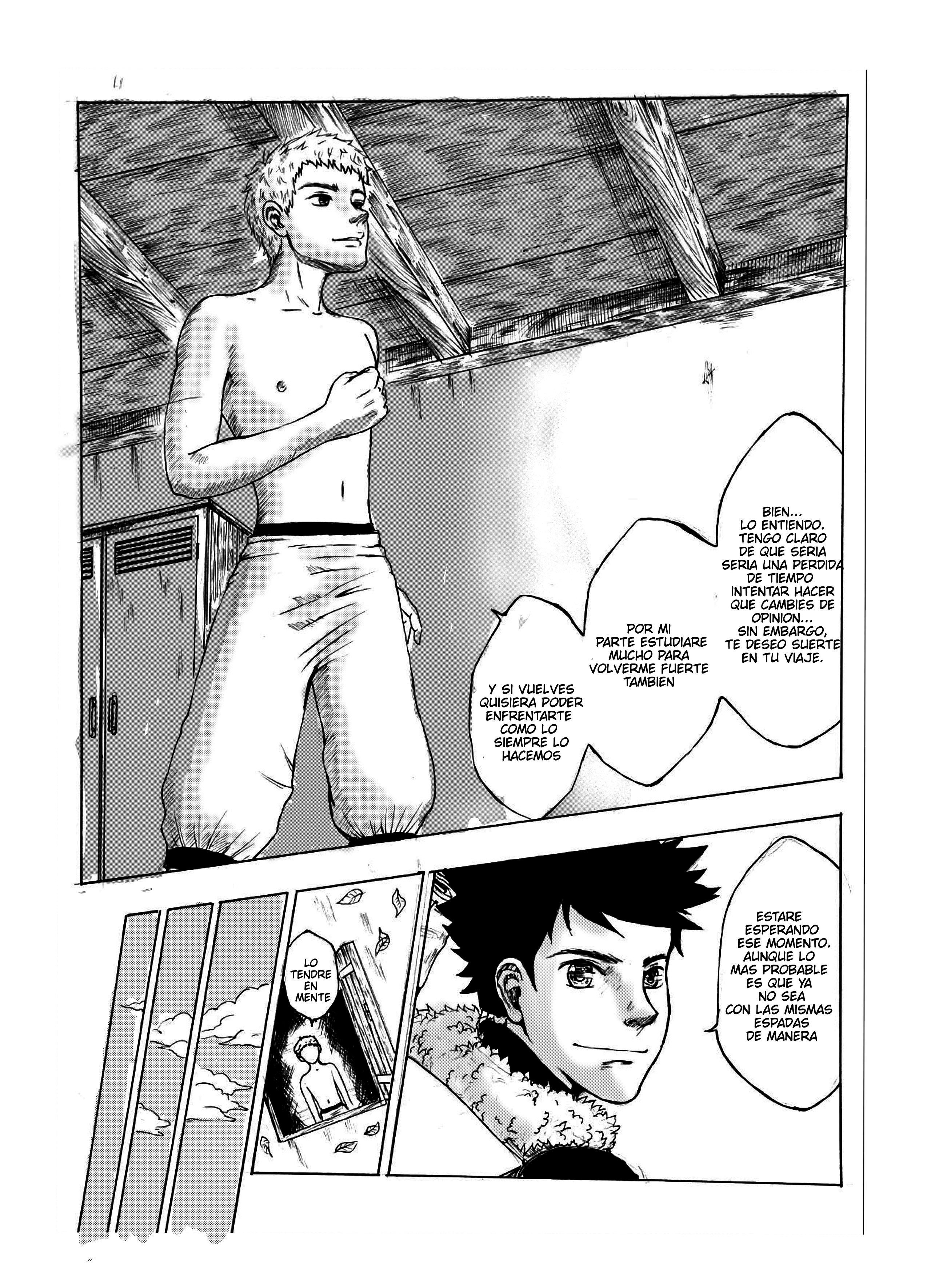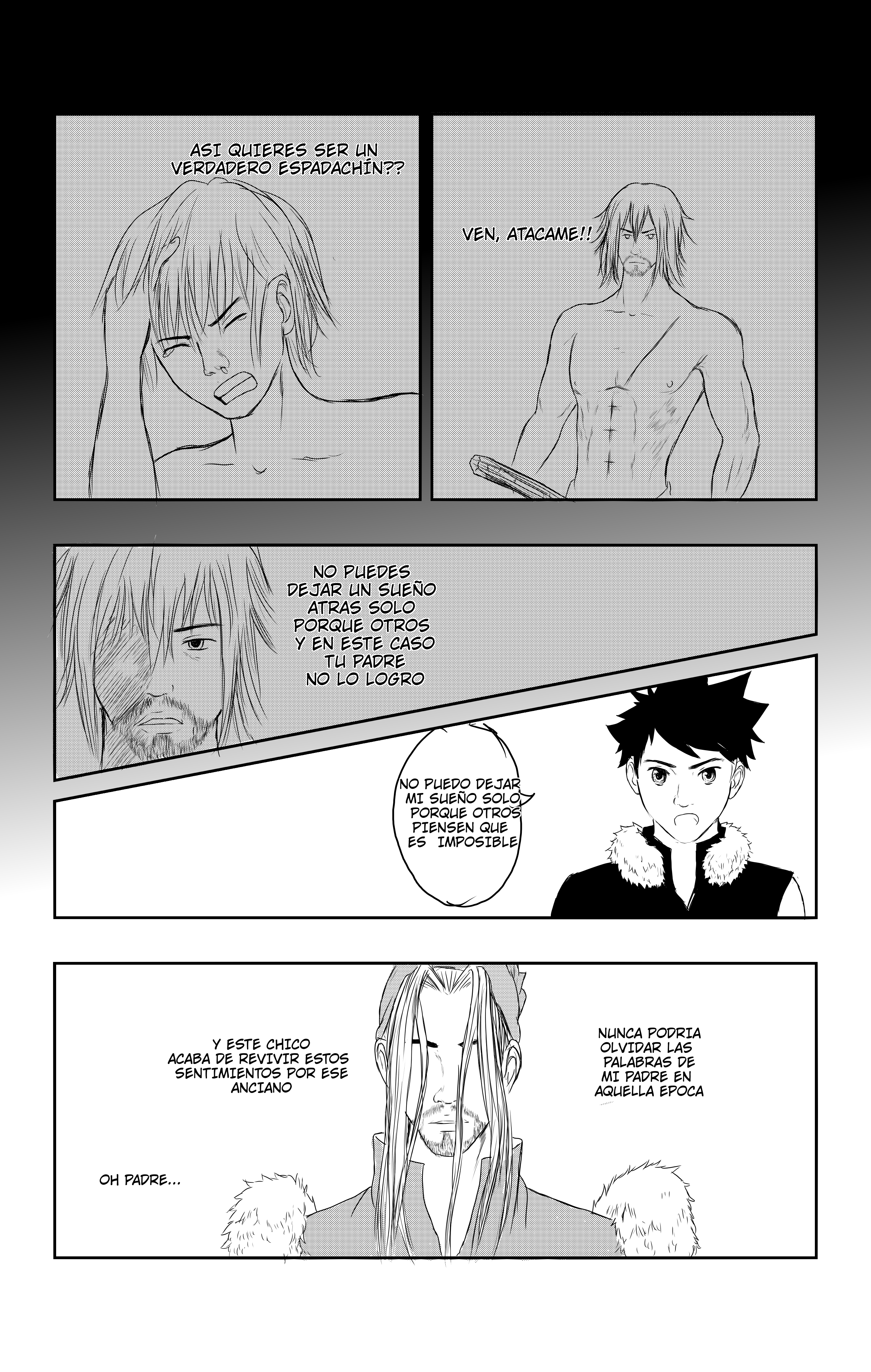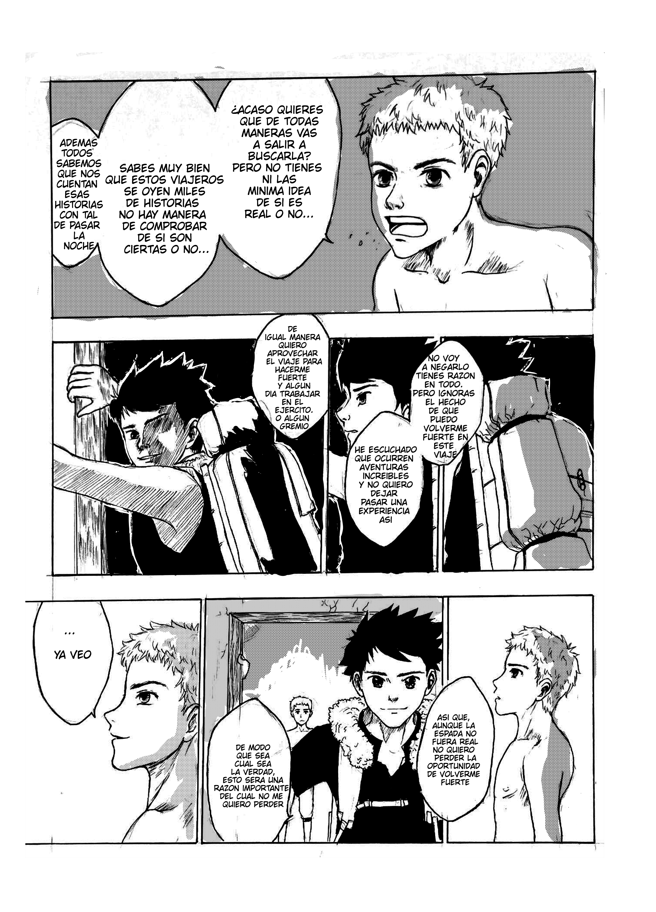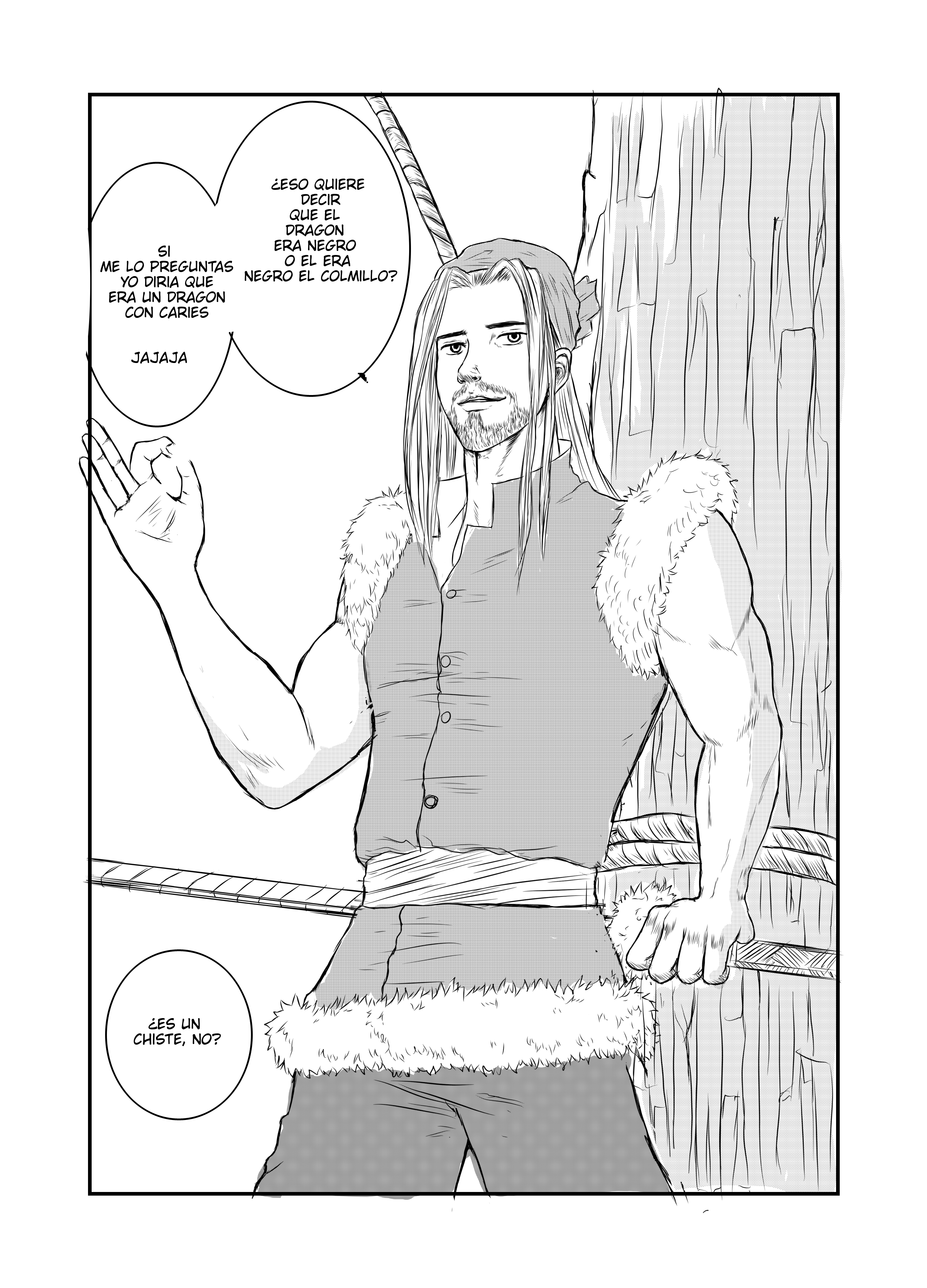 lol entonces termina en que encontró a alguien que lo guiara hacia su cruzada en busca de la espada legendaria, la ambientación y detalles de escenarios como la madera y demás estuvo 10/10, la historia es comica y a la vez nostálgica ya que bueno uno quiere cumplir a toda costa sus sueños no importa si eso involucra que no llevaras una vida larga, el chico esta decidido y ahora su «mentor» le dará el punto de inicio para que ponga aprueba su temple y ver si si su voluntad es real!. Gran Oneshot!
