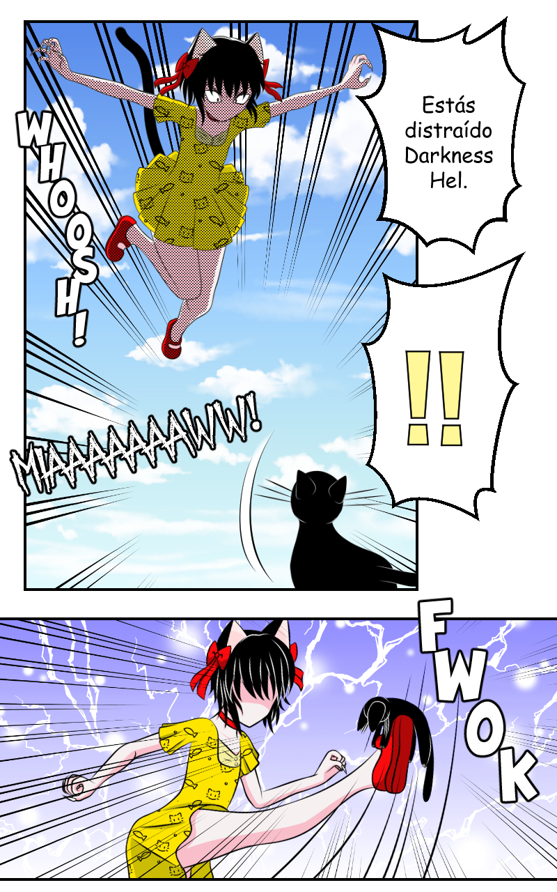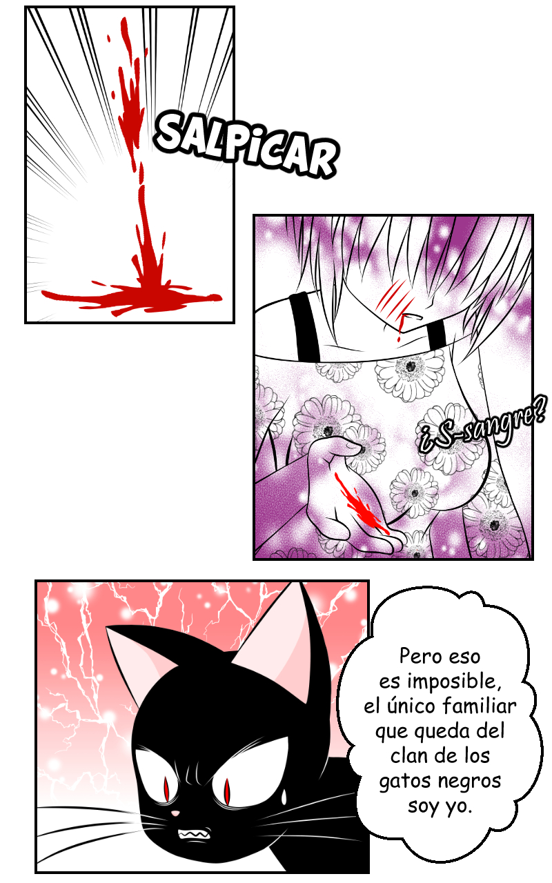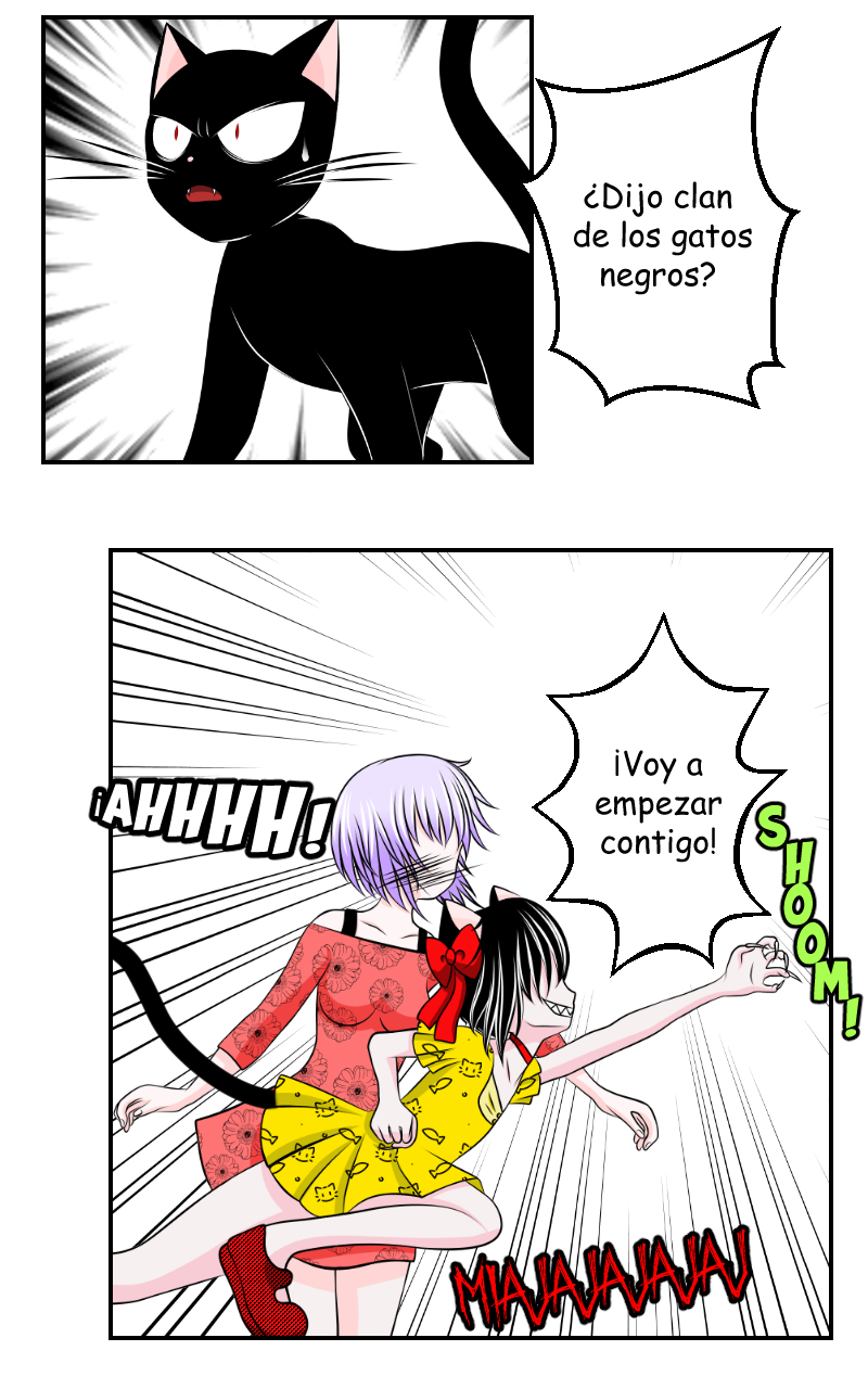 Es una buena idea patear al gato negro antes q se te crucé en el camino :v ojala ese rasguño no deje marcas, aunq se vería aún más genial la brujita xd . Buen trabajo , los diseños como siempre muy adorable. Aunque tiene temas oscuros muy camuflados bajo una capa de colores y dulzura de los personajes . 👍Muy buena!