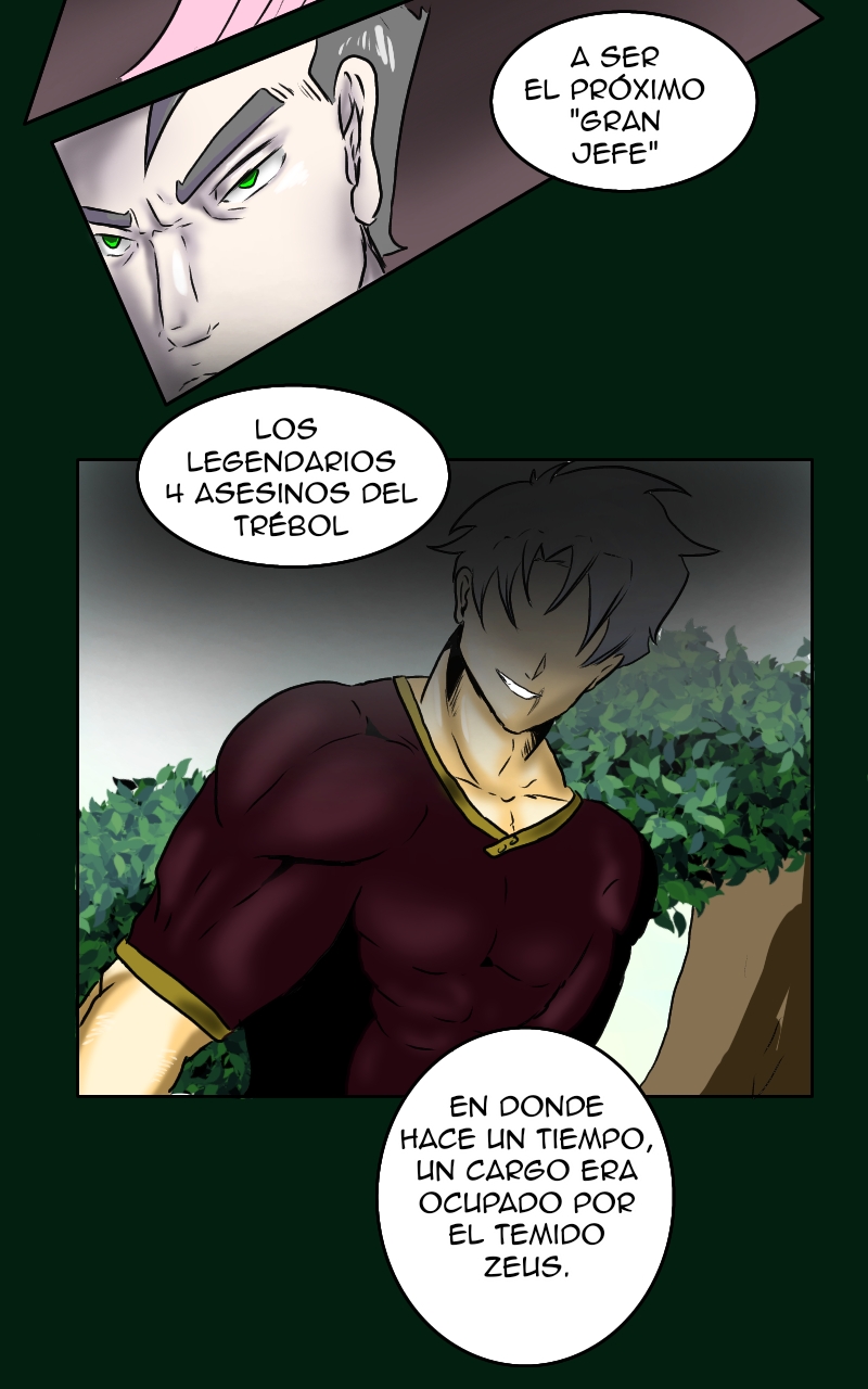 Todo inciara con el pla vi el traje de zeus y pensé que era el tras el computador pero resulta que era su ayudante xD, troleado fuimos xDD pero no espere que el mesero fuera Zeus enmascarado, incluso cubrió su cicatriz, también este cap se nos dio mas contexto sobre como opera el trébol y los 4 asesinos legendarios y el puesto libre que dejo Zeus al irse que es tomado por alguien aparentemente fuerte, el hijo del jefe, Ashura. A por el siguiente