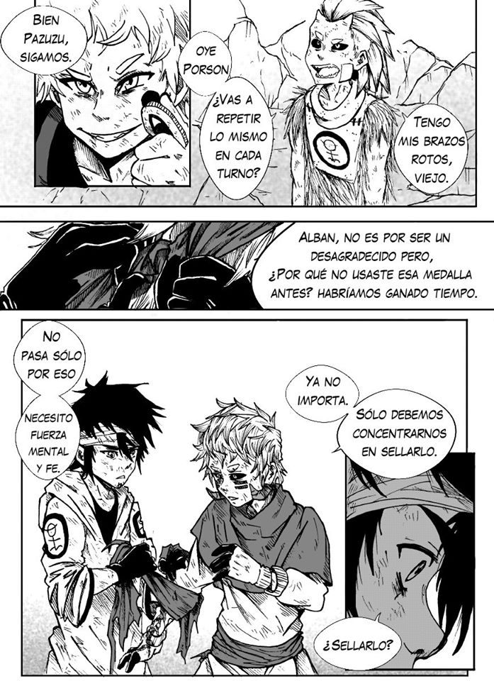 Chale, justo donde duele al pobre exorcista, es un buen apoyo pero en parte tienen razon ya que no puede hacer mucho sin pazuzu y ahora el esta juganfose el tpdo contra todo con el demonio de la moneda, tampoco se queda atras el otro pero como no esta acostumbrado al dolor moverse le sera dificil , gran capitulo