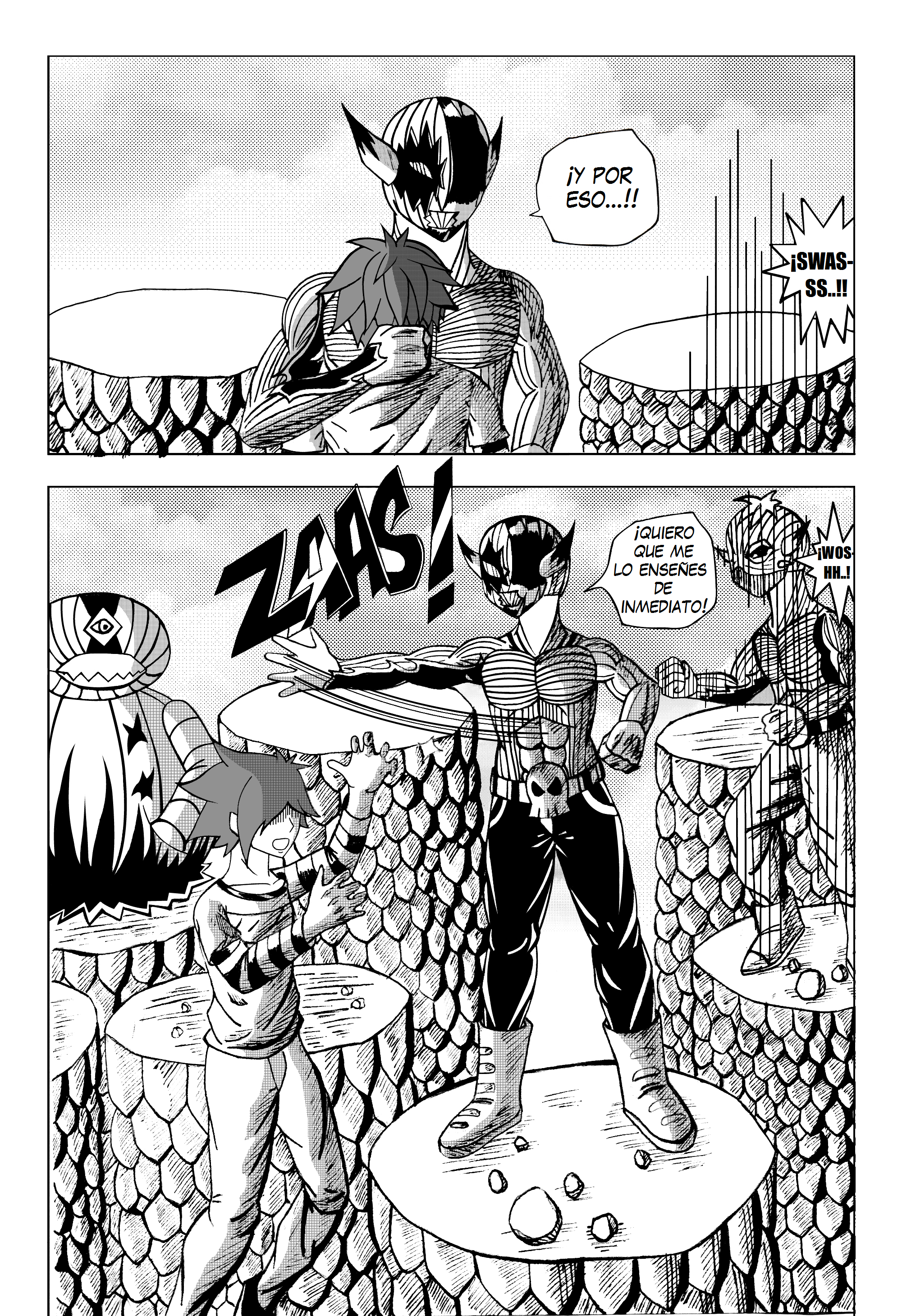 Los personajes y escenas que se muestran acá agresivos y enérgicos me agradó.( ◐ o ◑ )