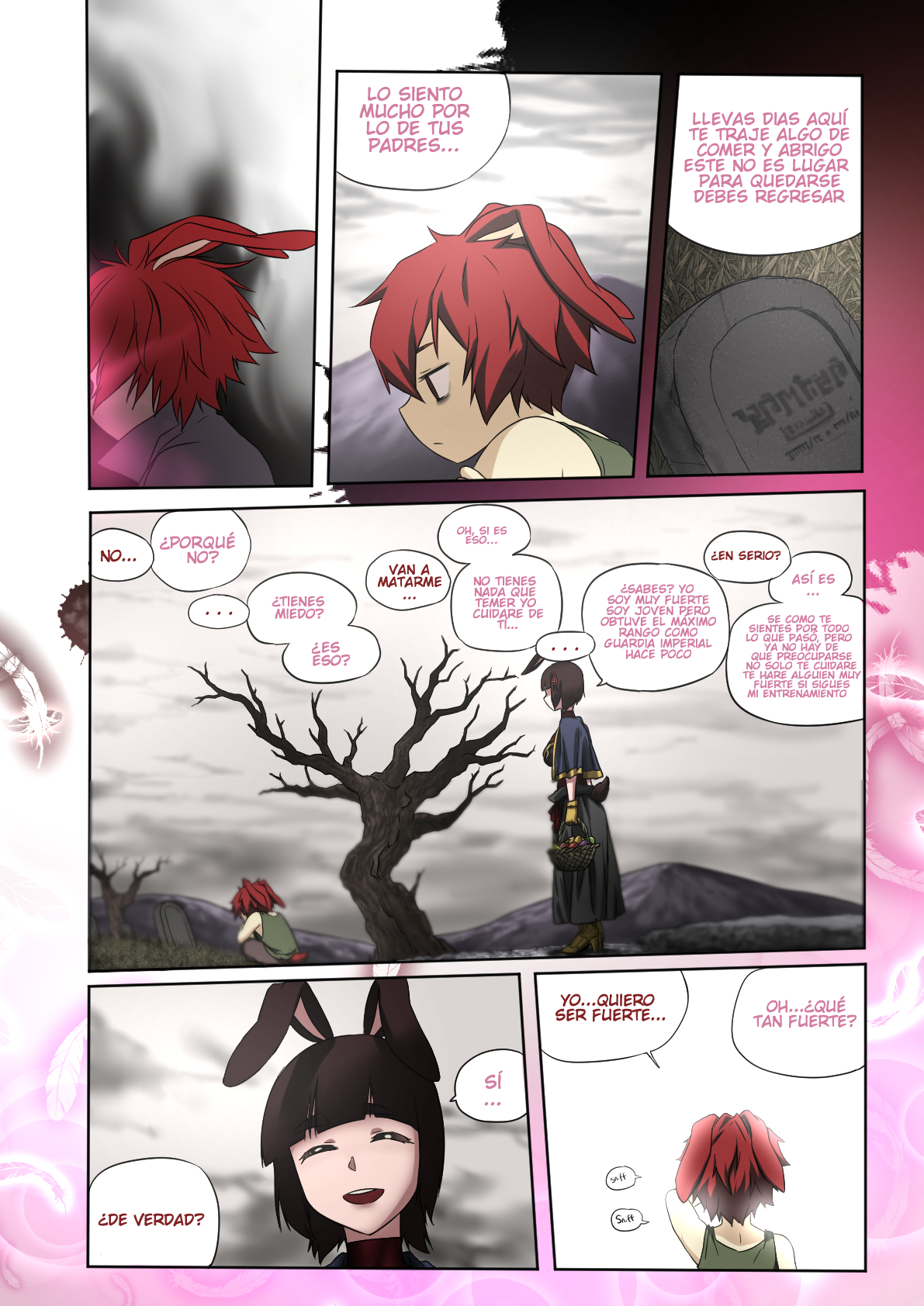 Tu arte esta a otro nivel(se ve q t has esforzado) me has dejado reenganchado con la historiaa..la trama se ve prometedora(un poco cliche para mi gusto pero el uso de viñetas hace que lo olvide)veamos como manejas la historia en los proximos capitulos…