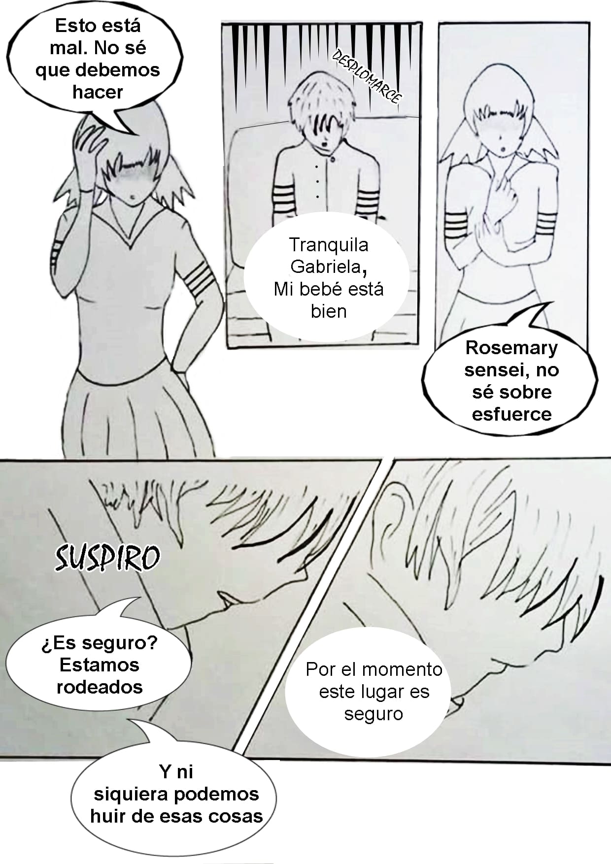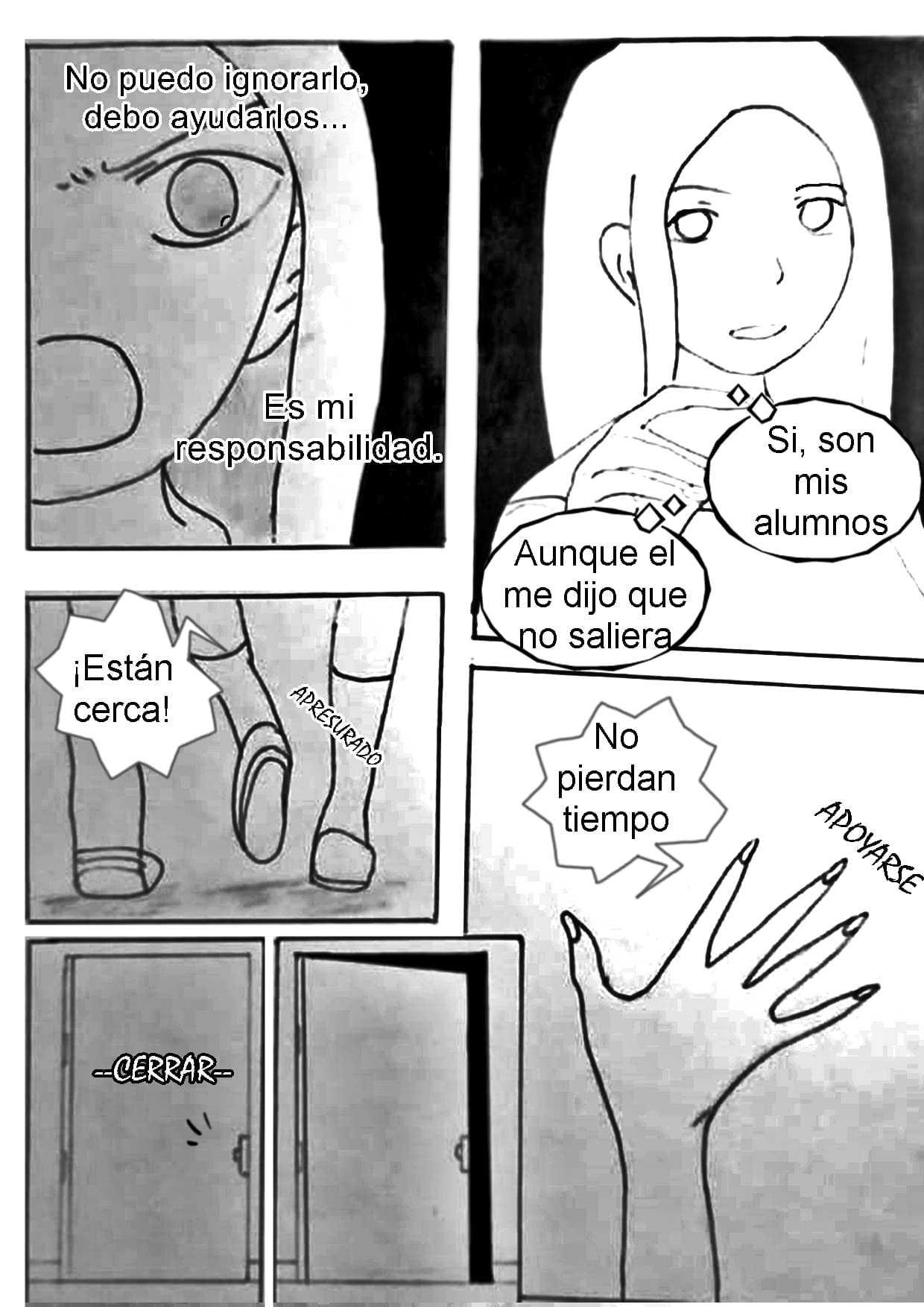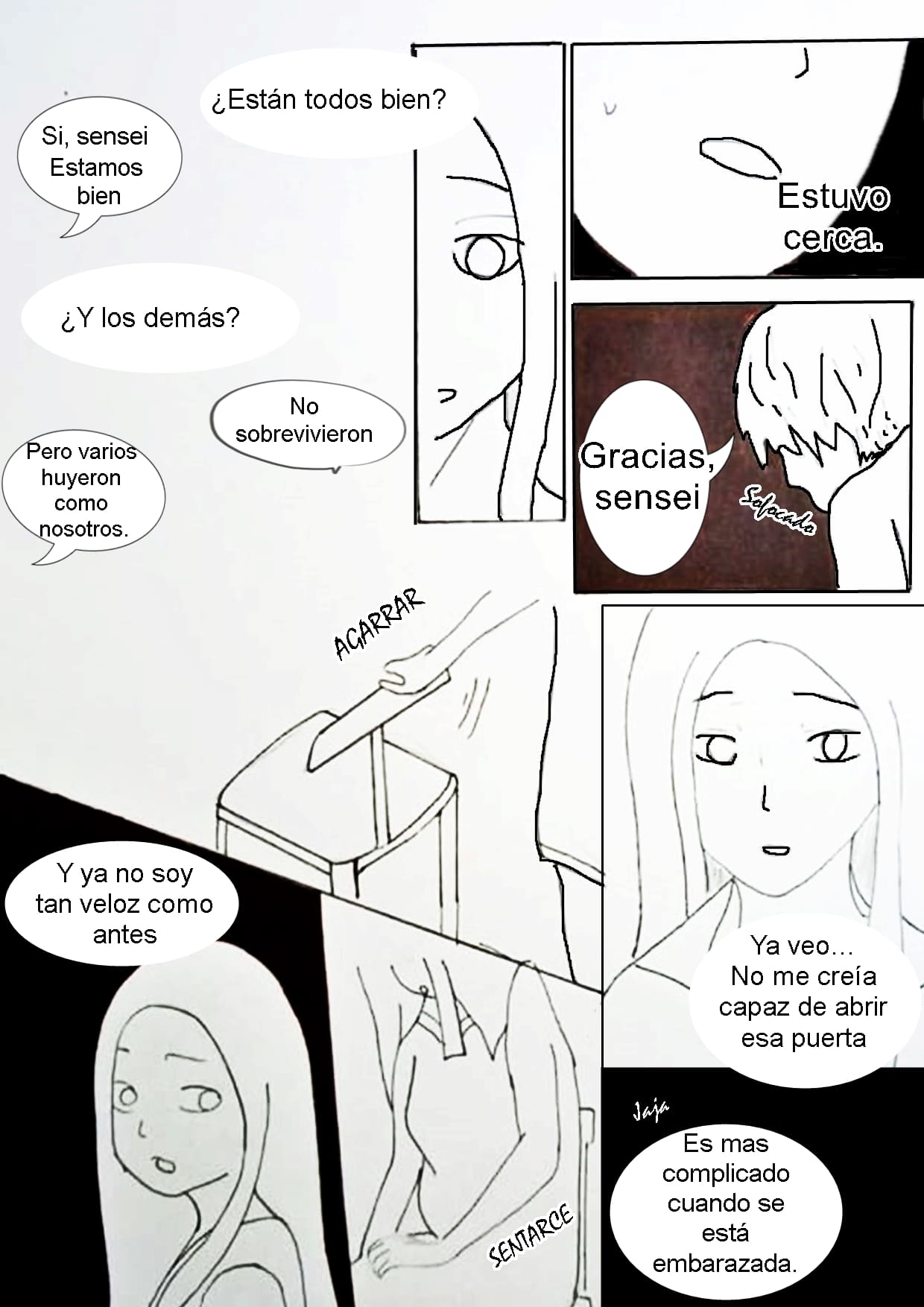 Los alumnos intentando protegerse, pero tarde o temprano los encontrarán, y lo más probable es que la profesora embaraza será la más afectada…