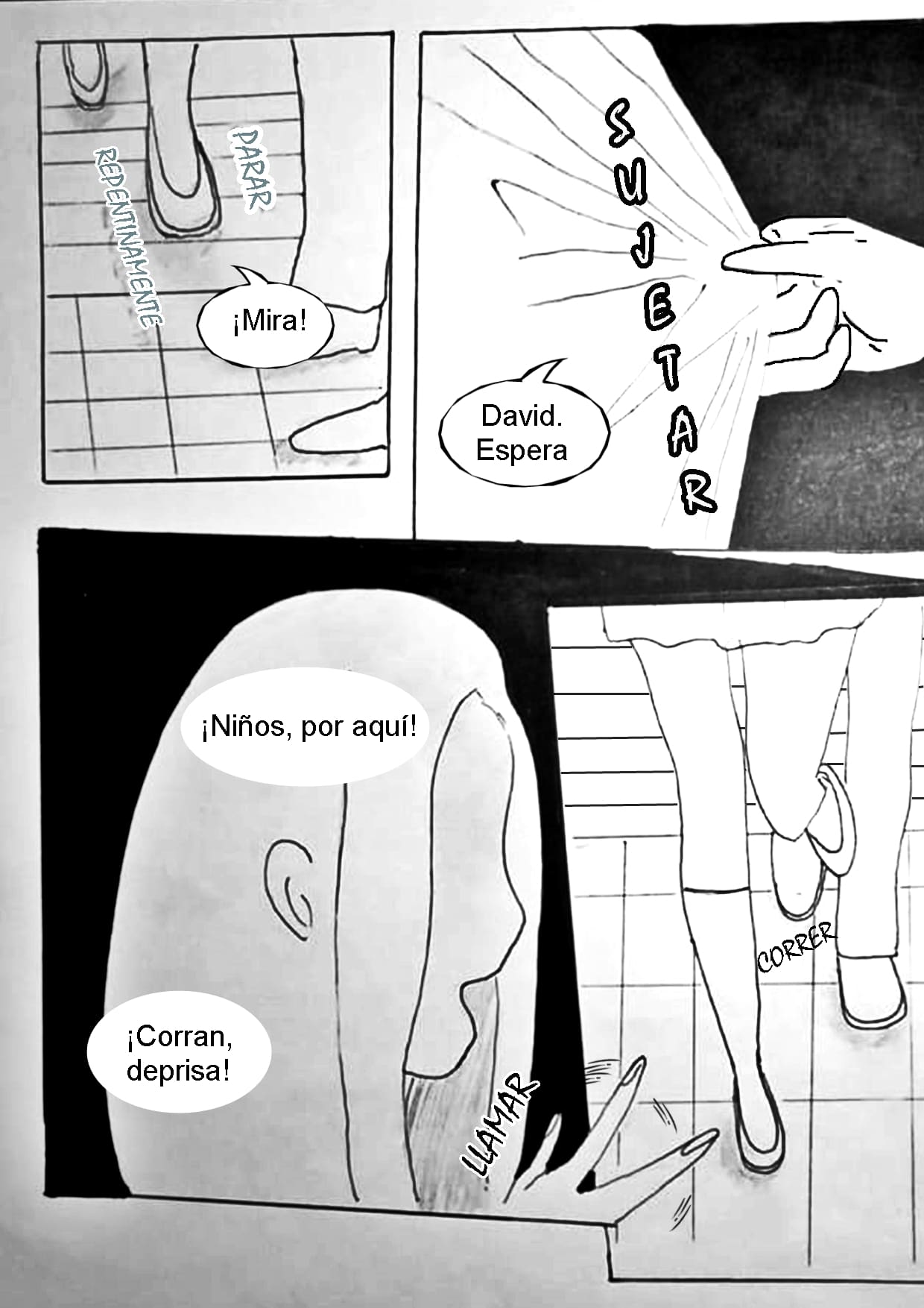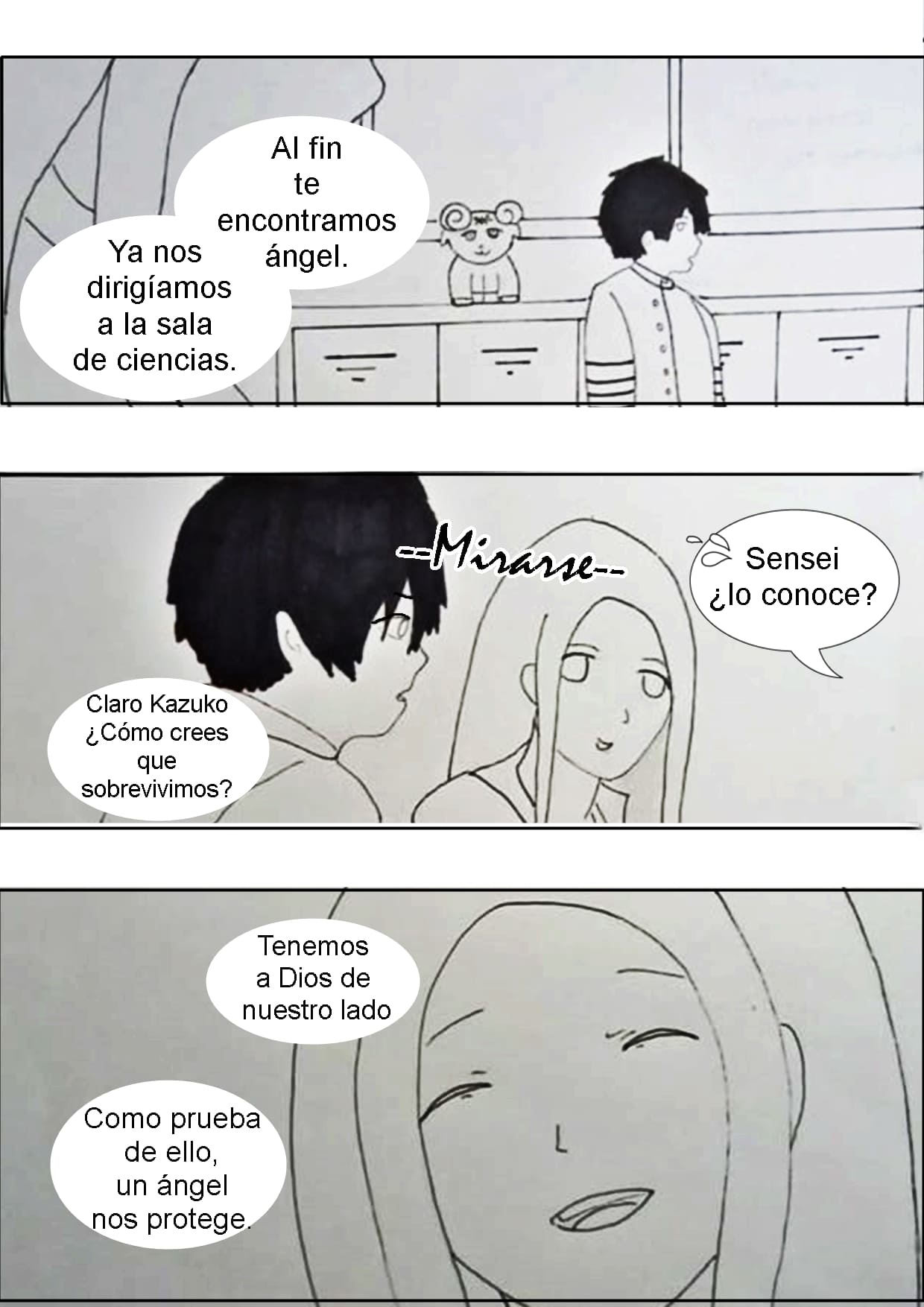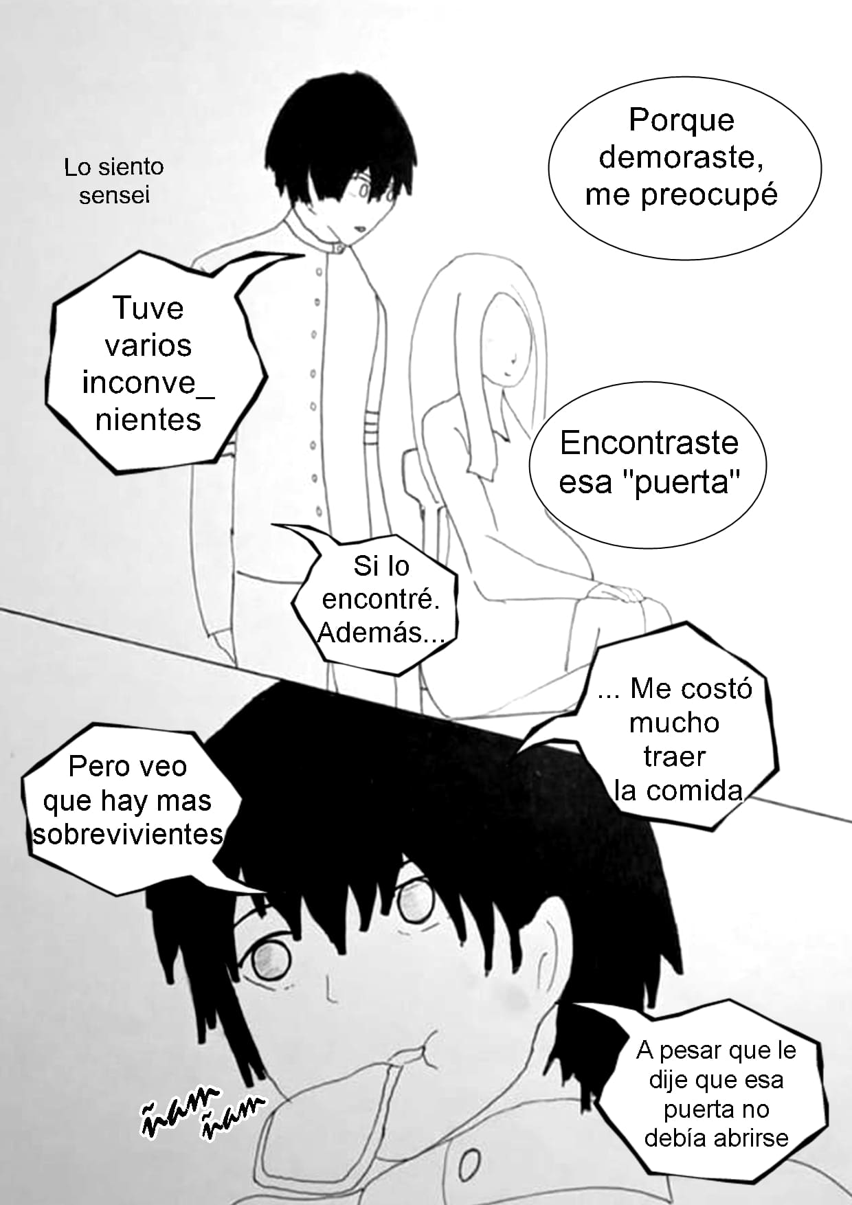 Los alumnos intentando protegerse, pero tarde o temprano los encontrarán, y lo más probable es que la profesora embaraza será la más afectada…