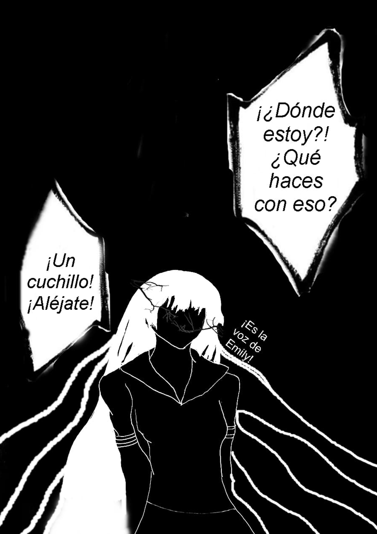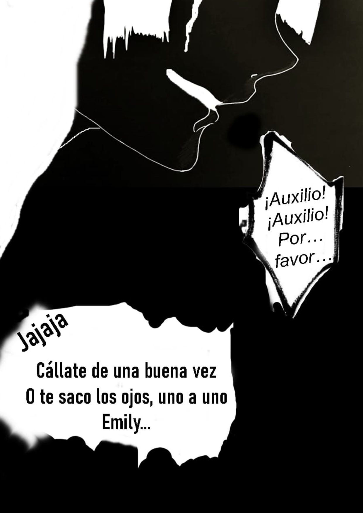 Continúa amenazando, el miedo no decrece jaja esa favorita me está dando meyo leerla 😭😭 le has puesto bastante sentimiento profundo pero de terror 😃