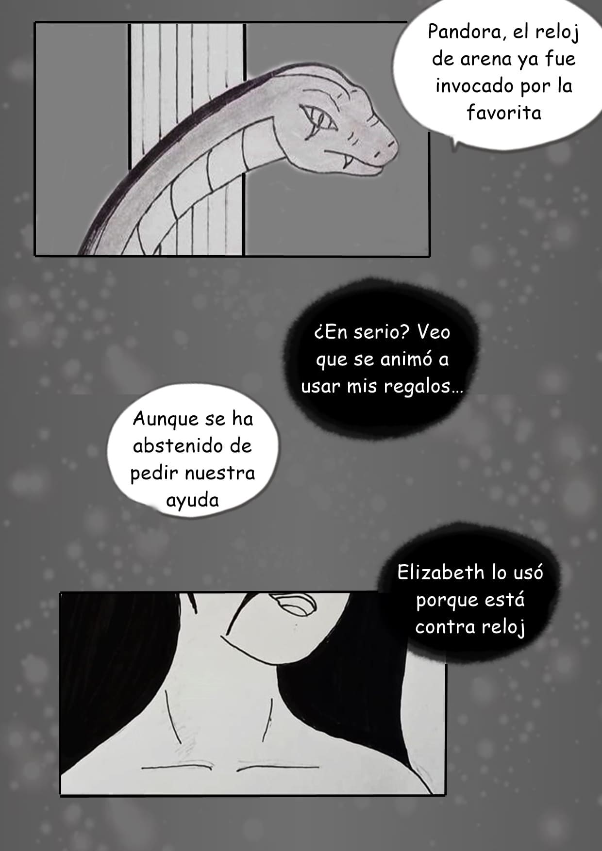 No puedo creer que ya es el capítulo 9 😲😲😲 es increíble!!! Hay cosas de este capítulo que me gustaron mucho, para empezar el diseño de personajes y sobretodo Pandora me encanta, también las expresiones de Elizabeth si que dan miedo 😨😨😨 pero está bien, porque ya está demostrado toda esa locura y sed de venganza, aunque no sé si es bueno tener a Emily en ese estado ☹️☹️☹️ pero ya el futuro dirá que destino tendrá Emily, en fin un exelente capítulo como siempre y ya que está el 10 también, me pasó a leerlo tengo que saber que le va a pasar a Anthony 😁😁😁