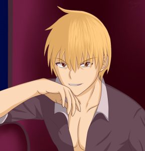 La joven sube a la primera planta e ingresa por una puerta lujosa. Del otro lado se encuentra con el mismísimo Sadokawa Kei, quien está sentado sobre otro sillón bastante grande, como si fuese un trono real. A su lado le rodean seis guardaespaldas.