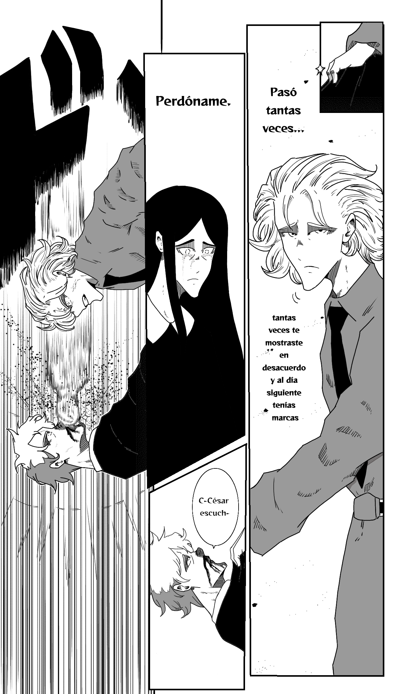 Eso agárrale a piñas al padre 👹💪, no se pero me dio la idea de que en su hogar sufren maltrato intrafamiliar😰, y el hecho que el padre haga eso que horror, pero fue gratificando viendo a Cesar poniendo un alto a ello, una madre es sagrada🧐… Pero… ¿Que querrá decirle el padre? Aún así, primero los golpes y luego el dialogo 💖😅😅😅