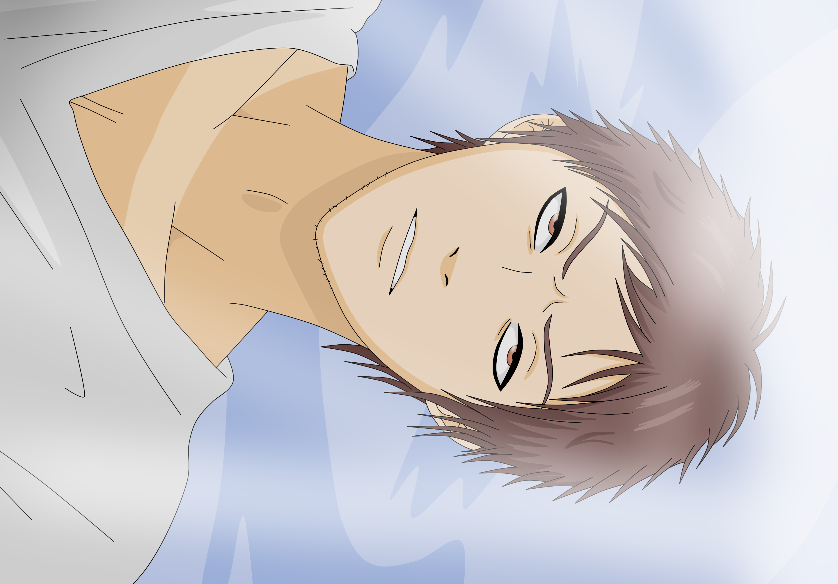 Los rayos de luz ingresaban a través de las cortinas blancas semi transparentes. Kimura contemplaba el cielo sentado en la cama, con un vendaje que le cubría la frente. Escuchando el sonido de Manami ingresando al cuarto, volteó. Seguramente despertó de una larga siesta, los ojos le pesaban, sin embargo demostraba calma en su rostro.